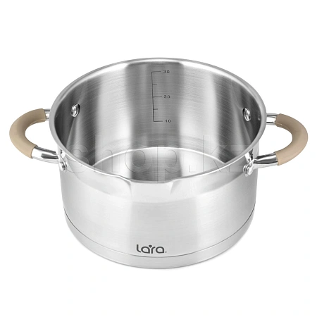 Мы подобрали кастрюли самых востребованных объемов и объединили их в одном наборе. В качестве материала для серии были подобраны высококачественная нержавеющая сталь AISI201, термостойкое стекло и ненагревающийся силикон бежевого цвета, который используется в отделке ручек.