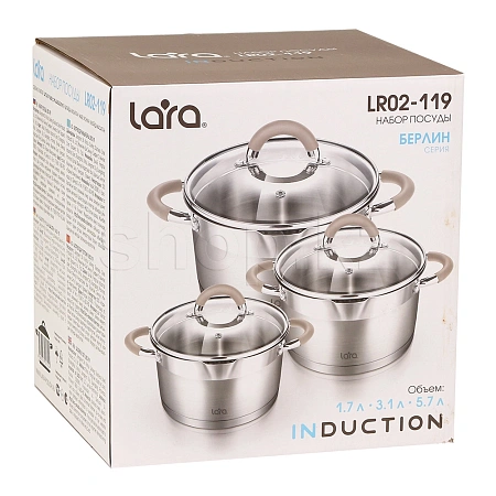 Набор посуды LARA серии «Берлин» перекликается с современной архитектурой одного из главных центров Европы – Берлином. Комплект сочетает в себе лаконичный дизайн, строгие формы, технологичные материалы и ненавязчивые акценты.