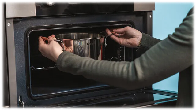 Можно использовать в духовке до 210°С (кроме стеклянных крышек)