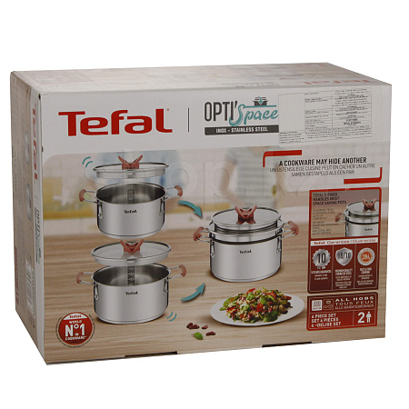 Готовьте с удовольствием, и пусть ваша кухня будет на высоте! С набором посуды OPTI'Space на кухонных полках появится больше свободного пространства: кастрюли и плоские крышки можно ставить друг в друга, а их ручки складываются, освобождая больше места.