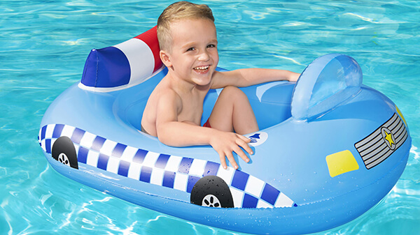 Отдыхайте с детьми безопасно и весело! Надувная лодочка с встроенным динамиком позабавит кроху.