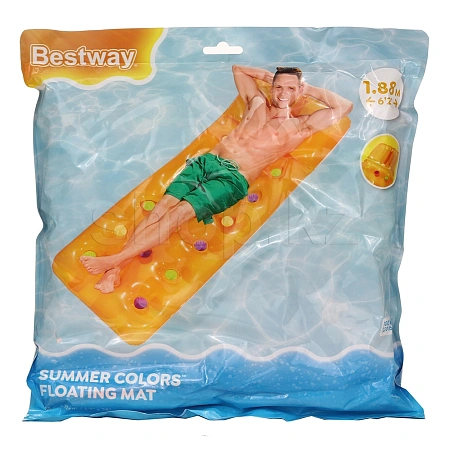Сенсационный надувной матрас для плавания Bestway отлично подходит для летнего отдыха. Сказочно цветной матрас с подушкой подарит чистое удовольствие во время отдыха. Представленный продукт летом, свежие цвета очень эффектно будут представлены на каждом пляже.