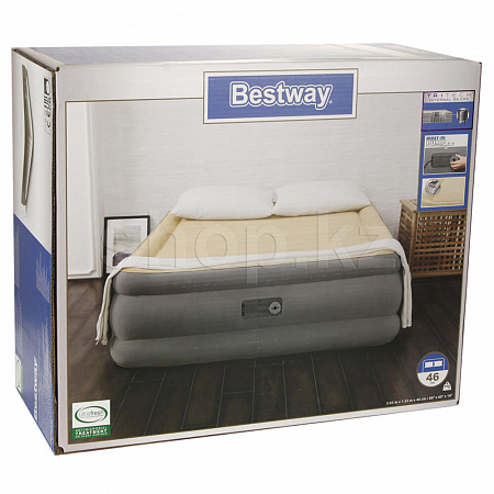 Кровать поставляется со встроенным электронасосом, который позволяет в считанные минуты надувать и сдувать кровать, а также дает возможность отрегулировать ее упругость. Насос подключается к обычной электросети 220В. При отсутствии электричества, кровать можно накачать обычным механическим насосом (приобретается отдельно).