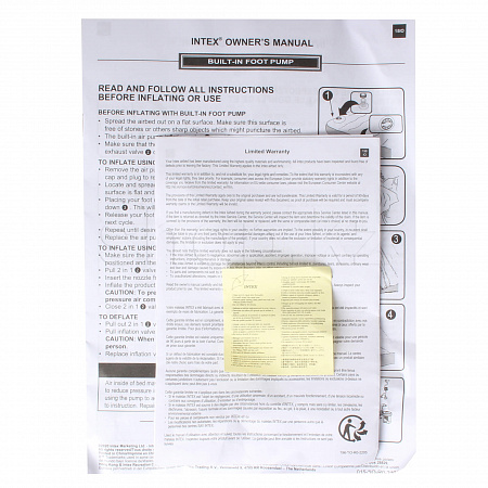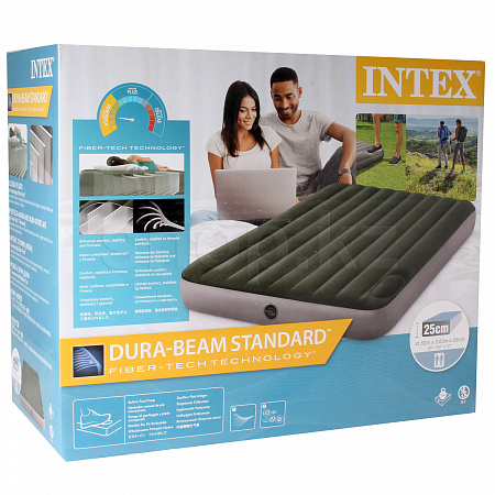 Двуспальный надувной матрас со встроенным ножным насосом (лягушка). INTEX "Downy Airbed" имеет специальную конструкцию Twin Downy, которая обеспечивает поддержку и мягкость. Материал матраса изготовлен из водоотталкивающего ПВХ, его очень легко чистить.