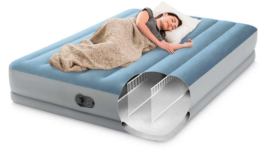 Его светло-голубой цвет не оставит вас равнодушным. Матрасы INTEX оснащены технологией Fiber Tech, состоящей из тысяч полиэфирных волокон, эта технология обеспечивает прочность и упругость.
