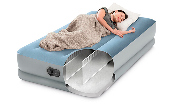 Надувная кровать Raised Comfort очень быстро надувается, она оснащена встроенным насосом с адаптируемым USB-портом: очень практично во время путешествий вне дома.