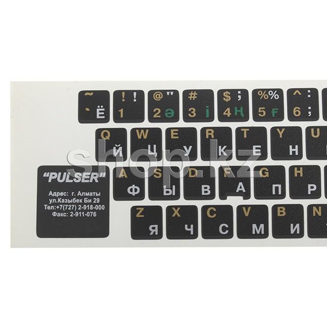 Наклейки на клавиатуру (черная основа - бронзовые, серебристые, зеленые буквы)