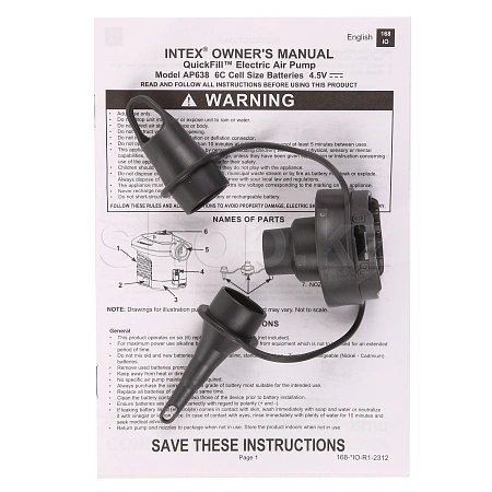 Электрический насос Intex 66638. Для работы насоса необходимо 6 шт батареек или аккумуляторов Тип С.