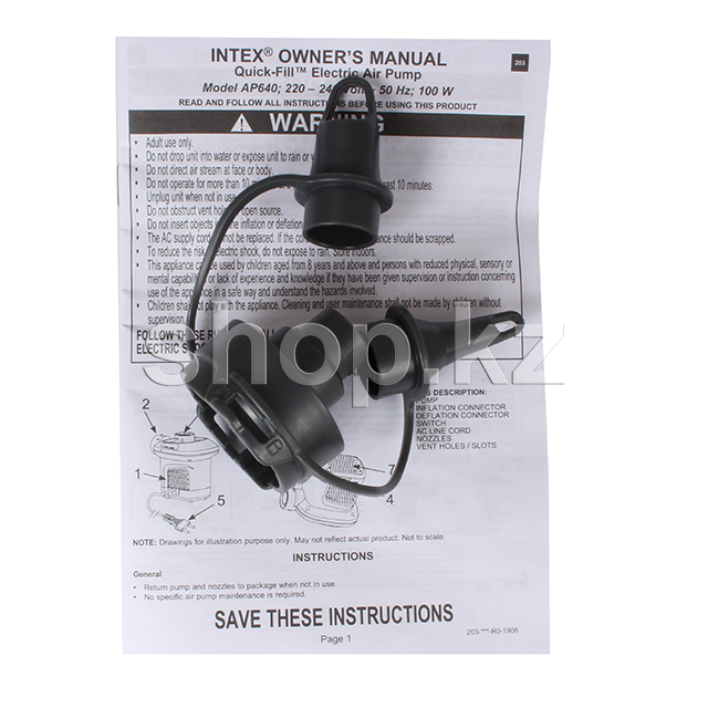 Электрический насос Intex 66640 работает от электрической сети 220В.