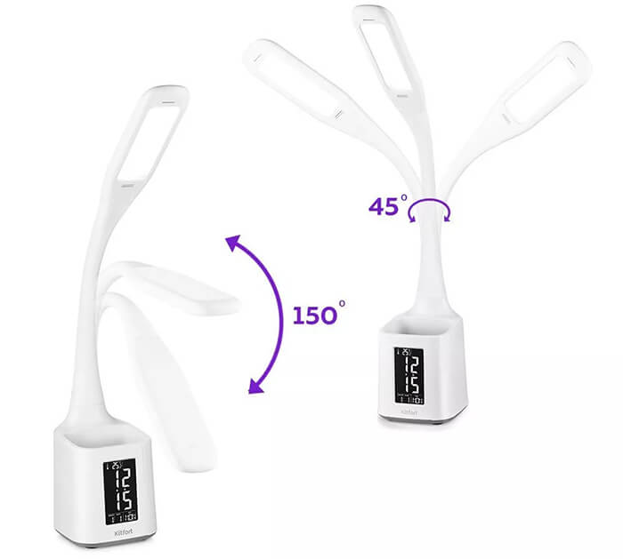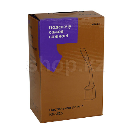 Настольная лампа КТ-3325 – эргономичная светодиодная лампа, которая отлично подойдёт для освещения рабочего пространства дома или в офисе. В лампе есть часы с датой и будильником, отображение t° в комнате, а также стакан для канцелярских принадлежностей.