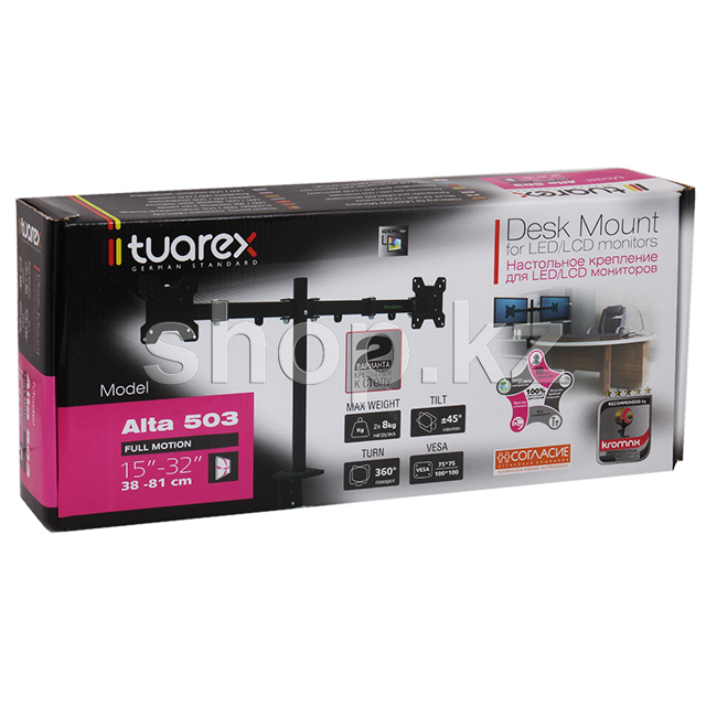 Максимальная нагрузка: до 16 кг (2 монитора по 8 кг)