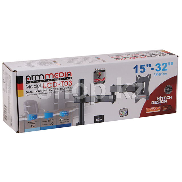 Монитор на кронштейне можно вращать в горизонтальной плоскости, наклонять вверх и вниз, и поворачивать влево и вправо