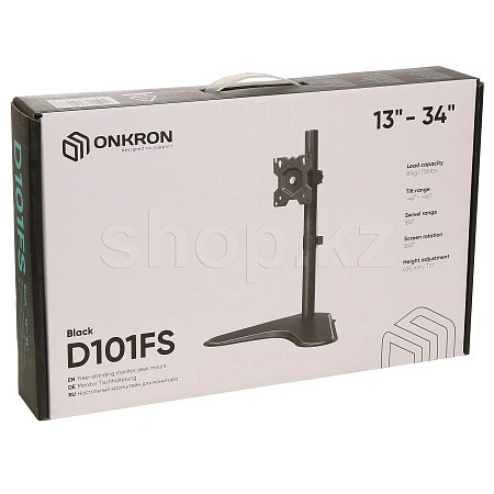 ENKRON d101fs жұмыс үстелінің кронштейні диагоналы 13-34 дюйм (33.02 – 86.36 см) және салмағы 8 кг-ға дейінгі мониторға жарамды.