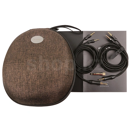 Оголовье из искусственной кожи с внешней стороны и велюровой с внутренней. Закрытая конструкция с чашами овальной формы, в узкой части 95 мм и в широкой 105 мм. Чаши из массива американского черного ореха с корпусами из твердого пластика. Направляющие и крепления из нержавеющей стали. Для каждого наушника свой утопленный разъем подключения кабеля. Эргономика