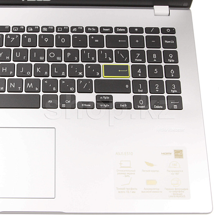 Ноутбук ASUS E510 выделяется внешне среди других моделей своим юношеским задором, который проявляется в деталях его оформления: выделяющейся ярко-желтым клавише Enter и уникальном узоре на крышке, состоящем из элементов деконструированного логотипа ASUS.