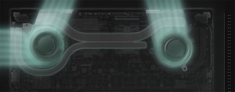 Благодаря полноценной системе охлаждения ноутбук сможет поддерживать высокую производительность в течение длительного срока службы. Ее элементы – тепловые трубки, радиаторы и вентиляционные отверстия – оптимизированы под ультракомпактный корпус устройства, а в качестве термоинтерфейса центрального процессора применяется высокоэффективный жидкий металл.