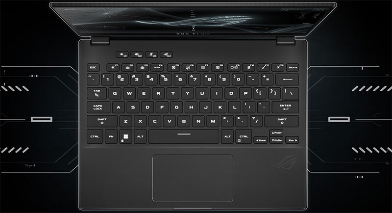 Полноразмерная клавиатура занимает всю ширину корпуса от одной грани до другой – для этого пришлось пересмотреть расположение интерфейсных разъемов. Изогнутые шляпки клавиш удобны для пальцев, а отдельная группа горячих клавиш предоставляет быстрый доступ к часто используемым функциям. Разблокировка ноутбука осуществляется так же легко, как со смартфонами – сканер отпечатков пальцев встроен в кнопку питания.