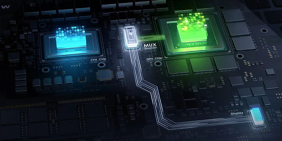 В современных игровых ноутбуках применяются мощные дискретные графические процессоры, выдающие высокую частоту кадров при отрисовке трехмерных сцен, однако обычно эти кадры выводятся на экран посредством графического ядра, встроенного в центральный процессор. Такая схема улучшает время автономной работы, но сказывается на графической производительности всего устройства.