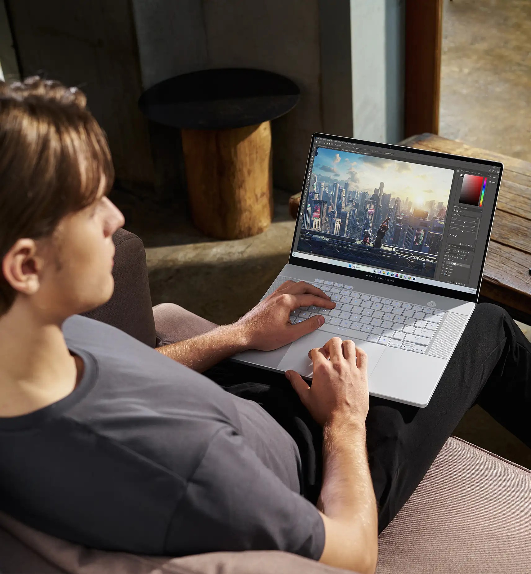 Новый ROG Zephyrus G16 привлекает с первого взгляда своим изяществом. Его корпус из алюминиевого сплава не только прочен, но и красив – благодаря анодированной поверхности серого или белого цвета с матовой отделкой.