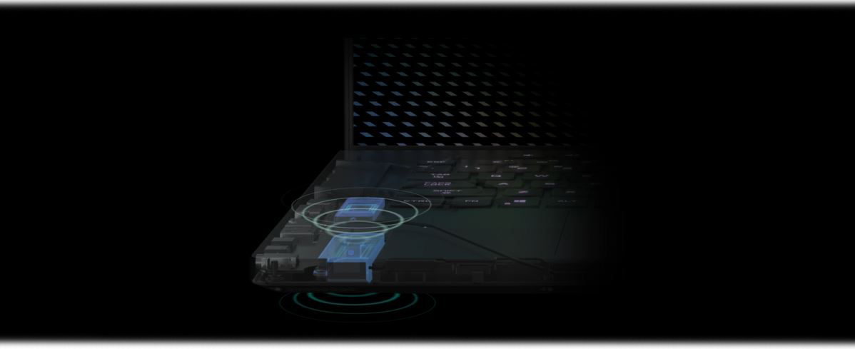 Низкочастотные динамики помогают создать более насыщенную, динамичную звуковую панораму, однако басовые ноты обычно производят заметные вибрации. Чтобы минимизировать резонанс, возникающий в компактном корпусе ROG Zephyrus M16, эти динамики размещены парами с небольшим смещением, чтобы погашать производимые друг другом вибрации.
