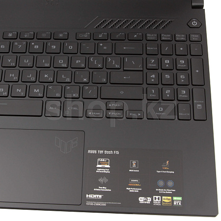 Ноутбук TUF Dash F15 2022-го модельного года выполнен в тонком корпусе с лаконичным дизайном. Тему утонченности продолжает узкая экранная рамка, которая совсем не отвлекает взгляд от изображения.