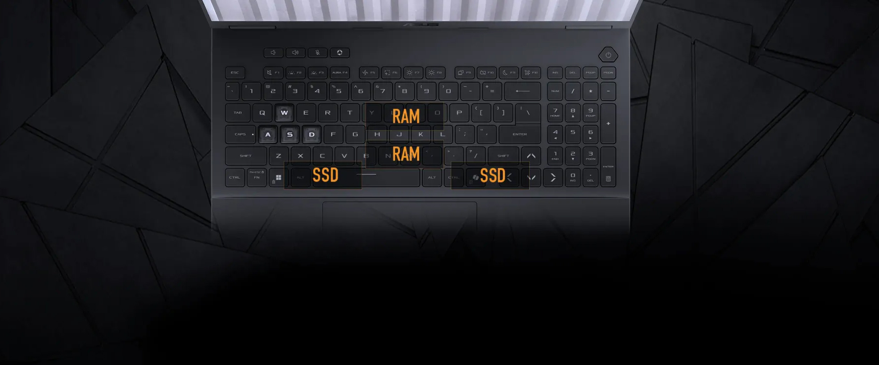 Вооружитесь настольной клавиатурой, оптимизированной для игр. Подсветка One Zone RGB позволит вам ярко выразить свой уникальный стиль. Технология Overstroke обеспечивает более высокую чувствительность при каждом нажатии клавиши, что обеспечивает более быструю реакцию и легкое управление. В соответствии с традициями TUF, каждая клавиша достаточно прочная, чтобы выдержать более 20 миллионов нажатий, что обеспечивает превосходную долговечность и точность. Тачпад также имеет частоту отклика 240 Гц, что дает системе больше информации о том, что вы прокручиваете, и уменьшает количество случайных ошибочных нажатий.