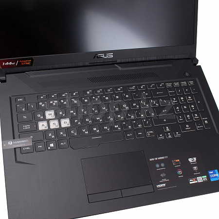 Кәдімгі сыртқы пернетақталар сияқты орналасу, жекелендірілген толық түсті жарықтандыру, TUF gaming F17 fx706hm ноутбугының арнайы wsad пернетақтасы ойынға арнайы оңтайландырылған. Overstroke технологиясы жылдам пернелерді іске қосуды қамтамасыз етеді, бұл әсіресе динамикалық көріністерде жылдам басқару үшін пайдалы болады. TUF сериясының рухына сәйкес, пернетақта да ерекше беріктікке ие.