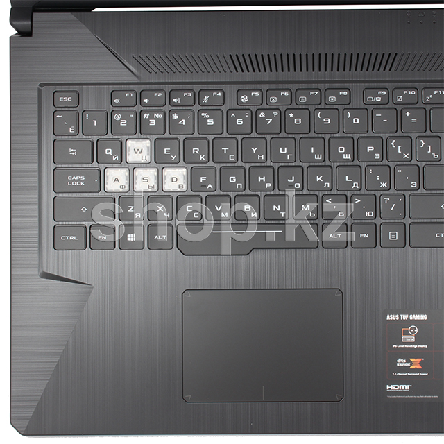 Арнайы WASD комбинациясы, кең бос орын пернесі, оқшауланған "көрсеткілер", функционалды пернелер топтары арасындағы Бос орындар – TUF gaming fx705 ноутбук пернетақтасы ойынға арнайы оңтайландырылған. Overstroke технологиясы жылдам пернелерді іске қосуды қамтамасыз етеді, бұл әсіресе динамикалық көріністерде жылдам басқару үшін пайдалы болады. Сонымен қатар, ол TUF Aura core утилитасы арқылы басқаруға болатын жарықтандыруды жүзеге асырады.
