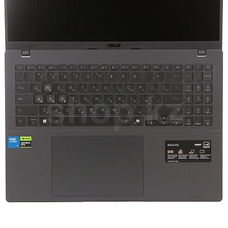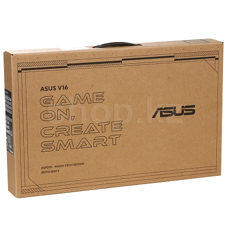 Күңгірт қара корпустың әрлеуі талғампаз стильді шығарады, ал тегіс құрылым пайдалану кезінде жайлылықты уәде етеді. ASUS v16 ноутбугының бірегей дизайны оны бірден бәсекелестіктен ерекшелендіреді.