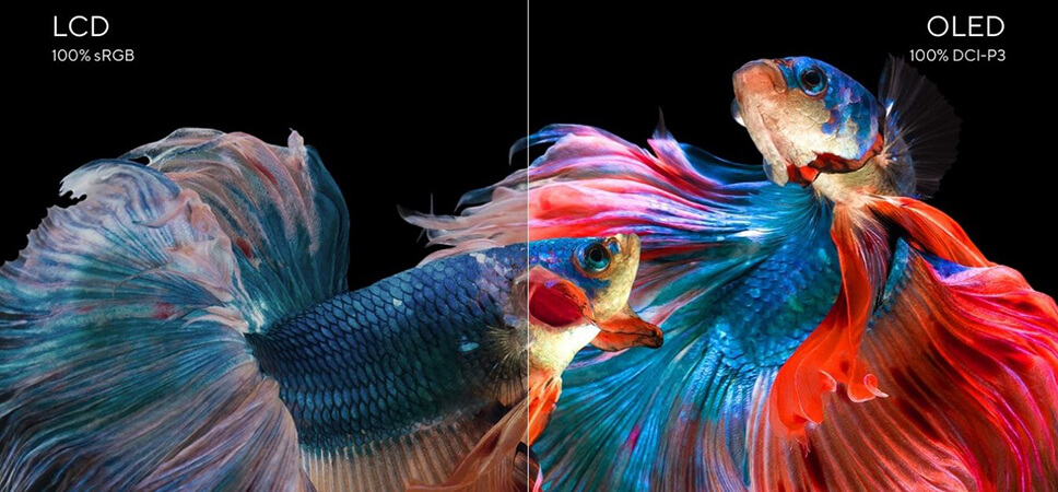Цветовой охват дисплея можно быстро переключать в зависимости от текущих задач. Вместо ярких «родных» цветов OLED-экрана вы можете предпочесть стандарт sRGB для создания или просмотра онлайн-контента, DCI-P3 для кинофильмов или Display-P3 для прочих приложений.