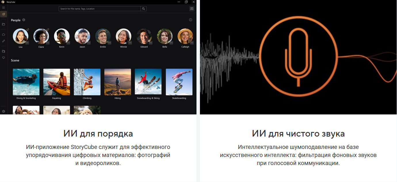 Легко упорядочивайте свою мультимедийную библиотеку с помощью автоматической категоризации, защищайте свою конфиденциальность и наслаждайтесь кристально чистым звуком при голосовом общении. ИИ-приложения ASUS – это будущее, в котором искусственный интеллект улучшает каждый аспект нашей жизни.