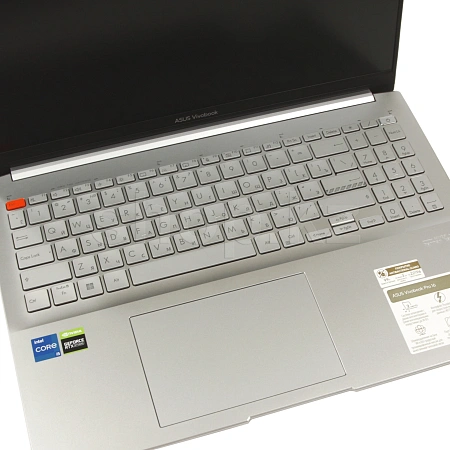 Vivobook Pro 16 выделяется среди обычных ноутбуков своим оригинальным дизайном и привлекает взгляд еще до того, как поднимается его крышка. Оригинальные декоративные элементы есть и внутри – клавиша Enter выделена полосками, а клавиша ESC – оранжевым цветом. Область под клавиатурой украшена слоганом серии Vivobook, отражающим исследовательское отношение к миру. Крышку ноутбука можно раскрывать на 180°, кладя ее на стол. Это особенно удобно при обсуждении проектов с единомышленниками.