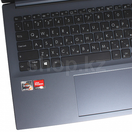 Vivobook өзінің жарқын дизайнымен қарапайым ноутбуктерден ерекшеленеді. Анодталған Шеврон үлгісі мен текстуралы беті бар бірегей үш өлшемді ASUS логотипі қақпақ көтерілгенге дейін көзді тартады. Түпнұсқа сәндік элементтер де бар-Enter пернесі, ескерту белгісі сияқты, жолақтармен ерекшеленеді.