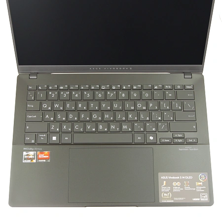 Аудиосистема ноутбука Vivobook S 14 OLED сертифицирована фирмой Harman Kardon и поддерживает функцию DTS Audio Processing – специальный алгоритм обработки аудиоматериала при выводе звука через встроенные динамики или наушники. Благодаря ему уменьшается уровень искажений, а низкие частоты звучат более насыщенно.