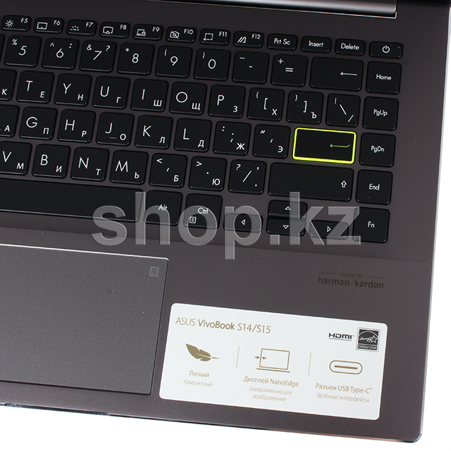 VivoBook S14 S433FL-бұл әр пайдаланушыға өзінің жеке басын көрсетуге мүмкіндік беретін батыл дизайны бар шынымен мобильді құрылғы. Жанасуға жағымды текстуралы әрлеуі бар талғампаз корпус, тіпті дисплей қақпағының астында сіз сары түспен белгіленген Enter пернесі түріндегі жарқын нотаны байқай аласыз. VivoBook S14 S433FL барлығына сіздің кім екеніңізді көрсетеді!