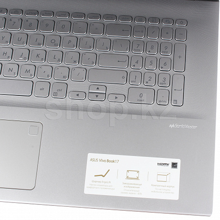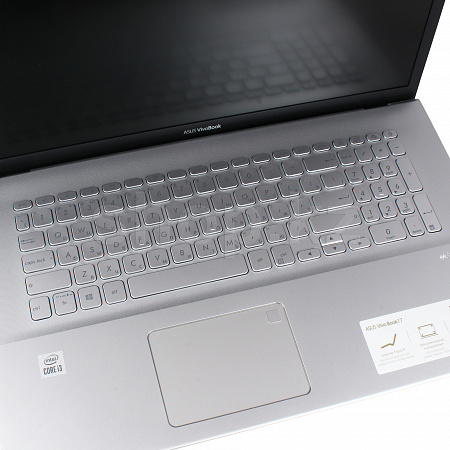 Vivobook 17 ноутбугының толық өлшемді пернетақтасы қараңғыда ыңғайлы жұмыс істеу үшін артқы жарықпен жабдықталған. Ол ойластырылған эргономикамен, берік дизайнымен және кілттердің оңтайлы тереңдігімен ерекшеленеді-1.4 мм, ал топсаның арқасында ErgoLift әрқашан оңтайлы бұрышта орналасады. Оның ресурсы 10 миллионнан астам түртуді құрайды.