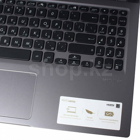 Полноразмерная клавиатура ноутбука ASUS X515JF отличается продуманной эргономикой, прочной конструкцией и оптимальной глубиной хода клавиш – 1.4 мм. Кроме того, имеется подсветка для комфортной работы в темноте.