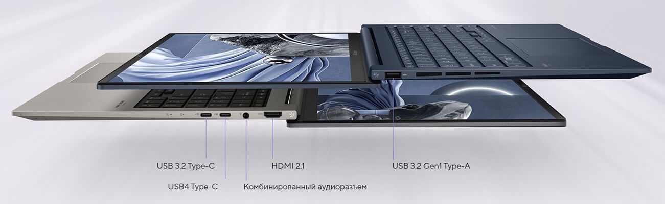 Zenbook 15 предлагает пользователю современный комплект интерфейсов. Для дисплеев и периферийных устройств есть порты HDMI и USB 3.2 Gen1 Type-A, а для подключения звукового оборудования – удобный комбинированный аудиоразъем. Особо стоит отметить наличие интерфейса USB-C, который поддерживает ускоренную подзарядку, вывод видеосигнала на внешние мониторы формата 4K и передачу данных на скорости до 40 Гбит/с.