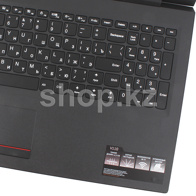 Қалыңдығы 1 дюймден аз және салмағы 2.1 кг Lenovo V110 кез келген жерде жұмыс істеуге мүмкіндік береді. Сонымен қатар, пернетақта пернелері арасында бос орындар жоқ. Бұл уақыт өте келе жиналатын және компьютердің жұмысын төмендететін шаң мен кірдің көлемін айтарлықтай азайтуға мүмкіндік береді.