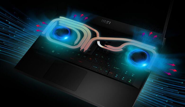 Чтобы гарантировать стабильную работу ноутбука под экстремальными игровыми нагрузками, в нем применена система охлаждения Cooler Boost 5, включающая в себя 6 тепловых трубок и 2 вентилятора.