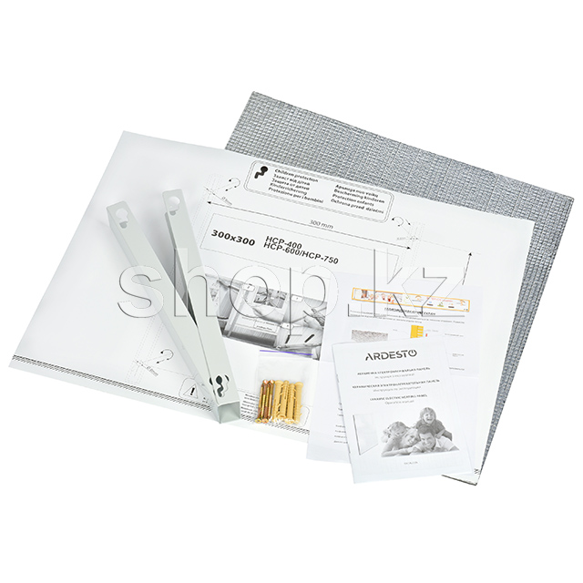 Для удобного монтажа обогревателя на стену предусмотрена инструкция со схемой переноса отверстий, теплоотражающий экран, крепления и кронштейн.