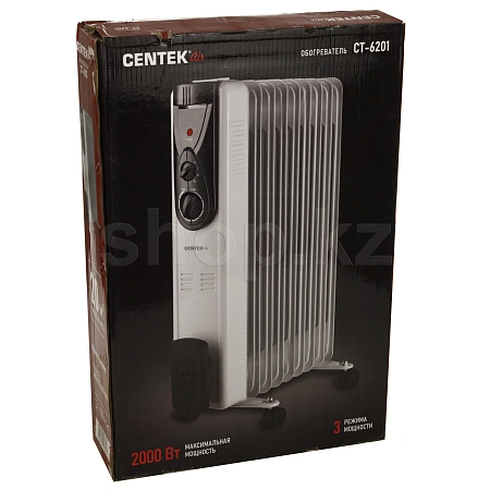 Масляный радиатор Centek СТ-6201 – компактный белый прибор с устойчивыми ножками на роликах и девятью секциями.