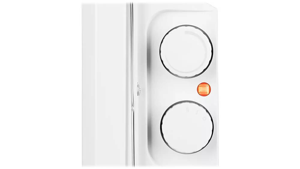Интуитивно понятная система управления представлена расположенными сбоку поворотными регуляторами, которые обеспечивают ступенчатое переключение мощности. Следить за параметрами работы устройства пользователь может с помощью светового индикатора.