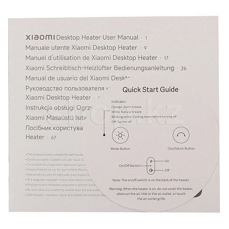 Портативный обогреватель Xiaomi Desktop Heater ZMNFJ01YMEU имеет термостойкий корпус из АБС-пластика и керамический нагревательный элемент РТС.