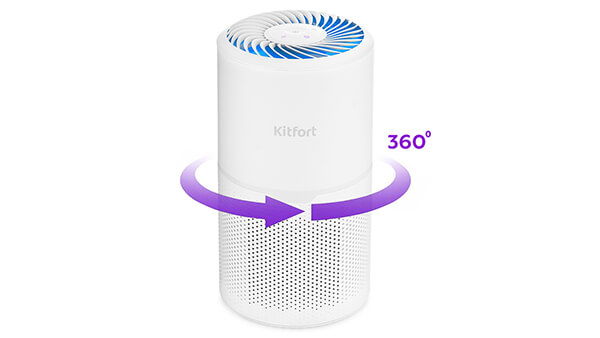 Чтобы позволить воздуху эффективно проникать со всех сторон, очиститель оснащён воздуховодом по всей своей окружности - 360°.