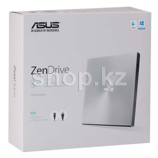 ASUS ZenDrive U9M – это внешний записывающий DVD-привод, выполненный в тонком корпусе с отличительным дизайном в стиле Zen. Благодаря поддержке интерфейсов USB Type-A и Type-C, его можно легко подключить к любому современному компьютеру.