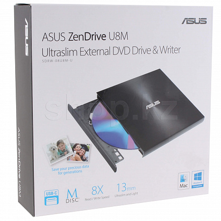 В отличие от многих других оптических приводов, ASUS ZenDrive U8M является совместимым с носителями формата M-Disc, которые могут хранить записанную на них информацию более тысячи лет, в то время как традиционные жесткие диски и «флешки» гарантированно служат не более десятилетия. Технология M-Disc – идеальное средство архивного хранения особо ценных данных.