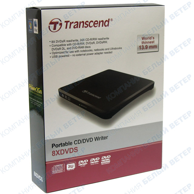 Толщина оптического привода Transcend TS8XDVDS-K — 13,9 мм