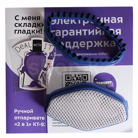 В комплект входят две насадки для отпаривателя - тканевая и ворсовая. Для очистки одежды от загрязнений прикрепите к отпаривателю ворсовую щетку. Щёткой удобно чистить одежду от шерсти домашних животных. Ею же можно чистить мягкую мебель.