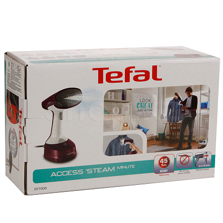Ручной отпариватель Tefal Access Steam Minute DT7005E0 освежает ткань, удаляет стойкие складки и устраняет посторонние запахи без гладильной доски. Чтобы воспользоваться им, достаточно повесить одежду на плечики. К нему также прилагается крючок, который можно зафиксировать на двери шкафа.